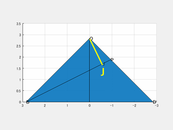 - 高さ($\mathrm{OJ}$)を求めるのは大変。座標を持ち出した。