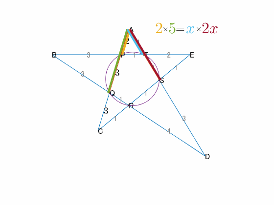 同様に方べきの定理を適用していくと、結果次のようになる。