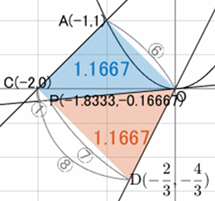 計算すると、 \[ \mathrm{P}\left(-\frac{11}{6},\; -\frac{1}{6}\right) \] となります。