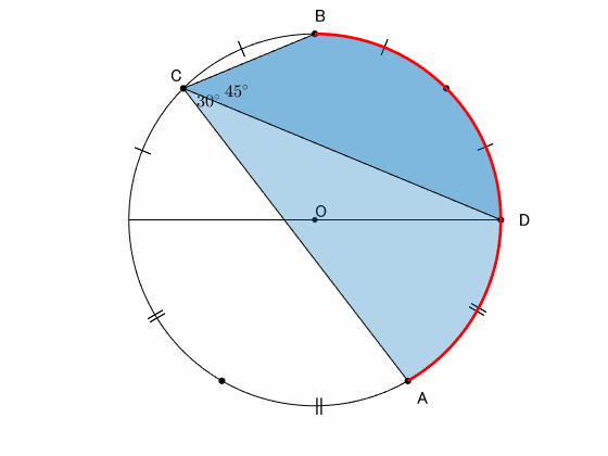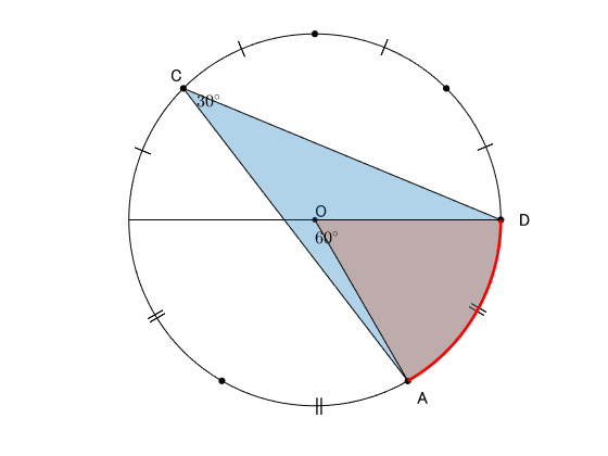 弧 $\overset{\frown}{\mathrm{AD}}$ の円周角は $30^\circ$